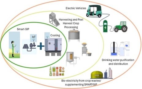 Irrigation is required on a full-time basis for only around 100 days per year, and at an average of around 50% usage for a further 100 days. So around half of the solar energy generated by the SIP is wasted. The Smart-SIP+ project seeks to harness this excess electricity to drive a large-scale clean energy transition in rural communities. Smart-SIP+ aims to develop smart energy systems that channel the surplus electricity towards local agricultural needs, such as sustainable cooling, post-harvest management, and food processing.